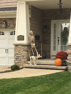 während bei uns Halloween allenfalls von kleinen Kindern gefeiert wird, die von Tür zu Tür gehen um sich Süssigkeiten zu erbetteln, ist das ganze hier in den USA eine Nummer grösser: Bereits seit dem Beginn von Oktober spielen die Leute verrückt. In Deutschland ist die Auswahl an Halloweeendekorationen eher begrenzt, doch hier bekommt man alles, was das Herz begehrt (und noch mehr). Es gibt tausend verschiedene Grusskarten in jedem Geschäft und auch vor den Häusern ist steht mehr Deko als nur ein obligatorischer Kürbis. Die Leute versuchen sich gegenseitig mit gruseligem Kitsch zu überbieten und so kommen wirklich sehr tolle Ideen dabei heraus.